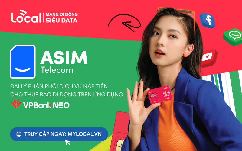 ASIM Telecom - đại lý phân phối dịch vụ nạp tiền cho thuê bao di động trên ứng dụng VPBank NEO