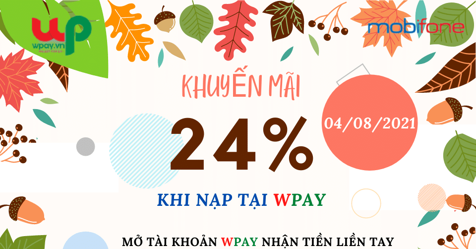 - ƯU ĐÃI KHỦNG dành cho khách hàng mua thẻ điện thoại Mobifone tại wPay nhận ngay 24% giá trị thẻ nạp.