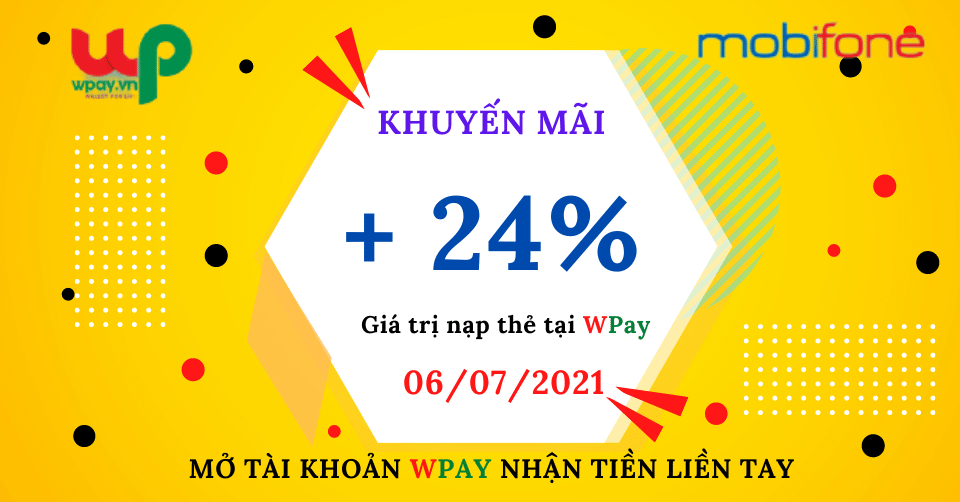 - ƯU ĐÃI KHỦNG dành cho khách hàng mua thẻ điện thoại Mobifone tại wPay nhận ngay 24% giá trị thẻ nạp.