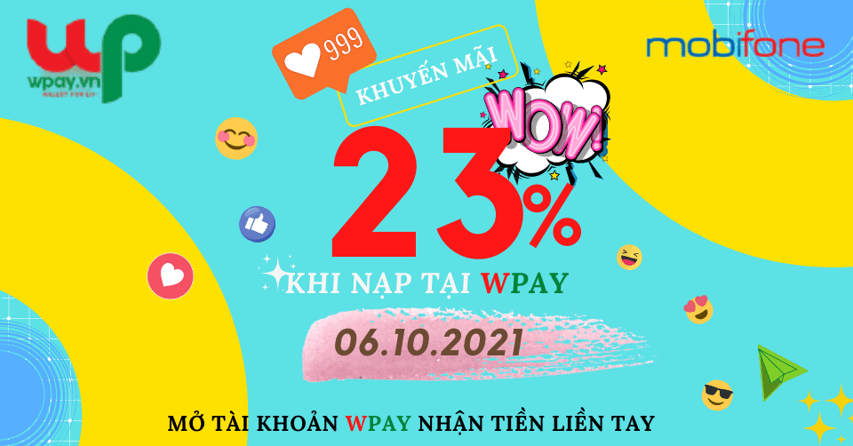 - ƯU ĐÃI KHỦNG dành cho khách hàng mua thẻ điện thoại Mobifone tại wPay nhận ngay 23% giá trị thẻ nạp.