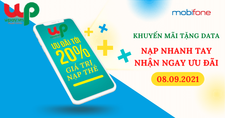 Mobifone Khuyến Mãi tặng data có giá trị tương ứng với 20% Giá Trị Thẻ Nạp Vào Ngày 08/09/2021