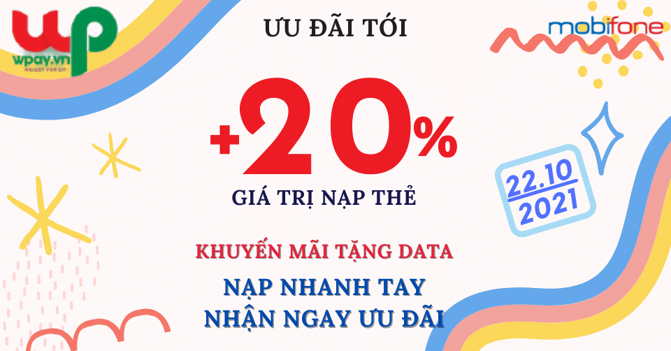 Mobifone Khuyến Mãi tặng data có giá trị tương ứng với 20% Giá Trị Thẻ Nạp Vào Ngày 10/10/2021