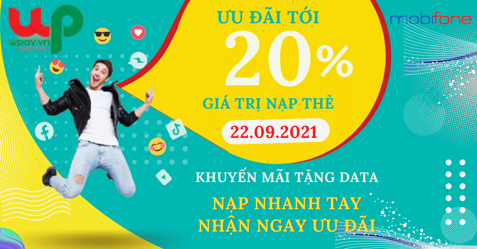 Trung thu này có ưu đãi gì không nhỉ? Tất nhiên là có rồi vào ngày 22/09/2021 này nhà mạng MOBIFONE sẽ khuyến mãi tặng Data đó. Hấp dẫn hơn nữa khi mọi người nạp tại WPAY sẽ nhận ưu đãi tới 20% giá trị nạp thẻ. Nào nào cùng nhau nạp ngay để vừa ăn Trung thu vừa lướt Tik Tok, Facebook, xem phim,..thả ga nào!!🥰