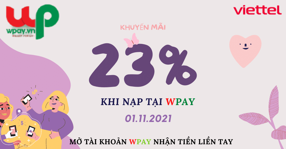- Chưa dừng lại ở đó, bạn sẽ còn được nhận Ưu đãi đầu năm đến từ Ví WPAY. Khi bạn mua thẻ điện thoại Viettel tại app WPay nhận ngay 23%+ giá trị thẻ nạp.