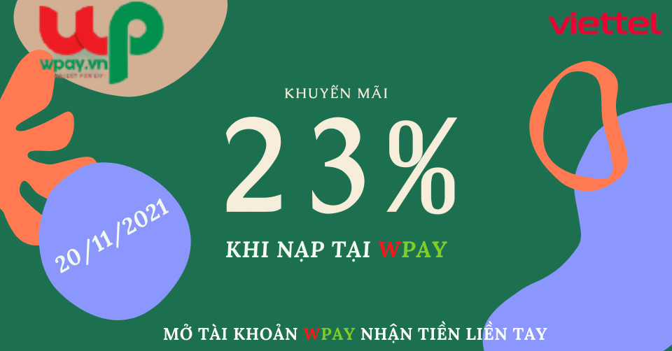 - Chưa dừng lại ở đó, bạn sẽ còn được nhận Ưu đãi đầu năm đến từ Ví WPAY. Khi bạn mua thẻ điện thoại Viettel tại app WPay nhận ngay 23%+ giá trị thẻ nạp.