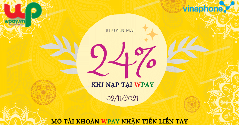 - ƯU ĐÃI KHỦNG dành cho khách hàng mua thẻ điện thoại Vinaphone tại wPay nhận ngay 24%+ giá trị thẻ nạp.